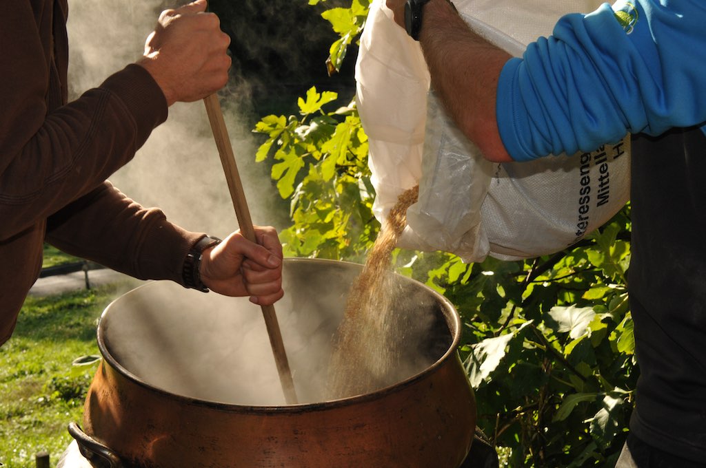 Outdoor-Bier brauen ohne technischen Schnickschnack. Ein komplexer Prozess wird mit einfachsten Mitteln über Feuer und mit Wasser umgesetzt. Parallel dazu werden die Zusammenhänge vom Brauprozess verständlich und einfach erläutert. Alle Schritte: Von der Auswahl der Malz- und Hopfensorten über Einmaischen, Abläuten, Kochen, Kühlen und einleiten der Gärung werden durch die Gruppe über und neben dem Feuer durchgeführt. So bietet der Event nebst Biergenuss allerhand Lehrreicheres über Bier wie bestimmt auch einige “aha” Momente und Lacher.